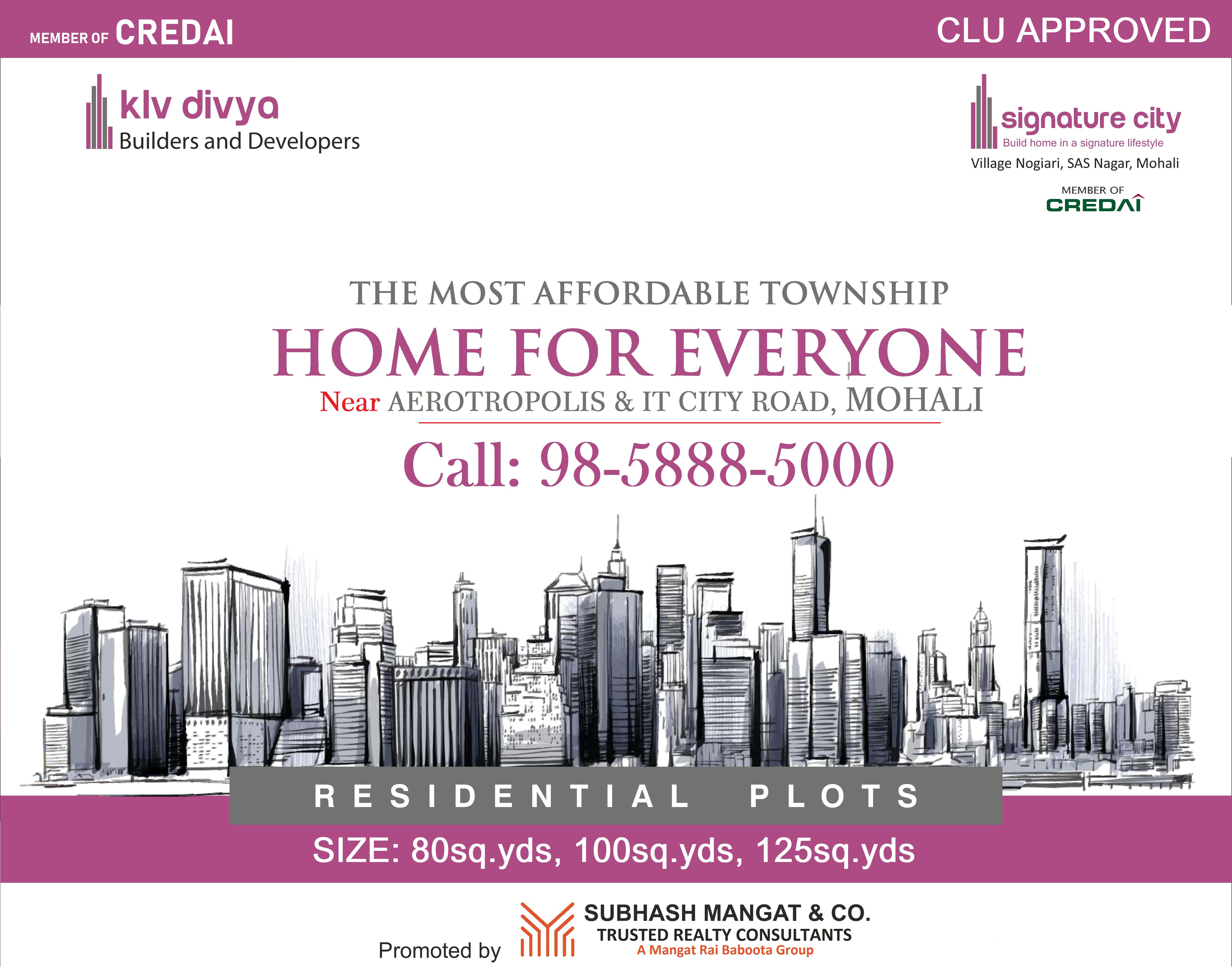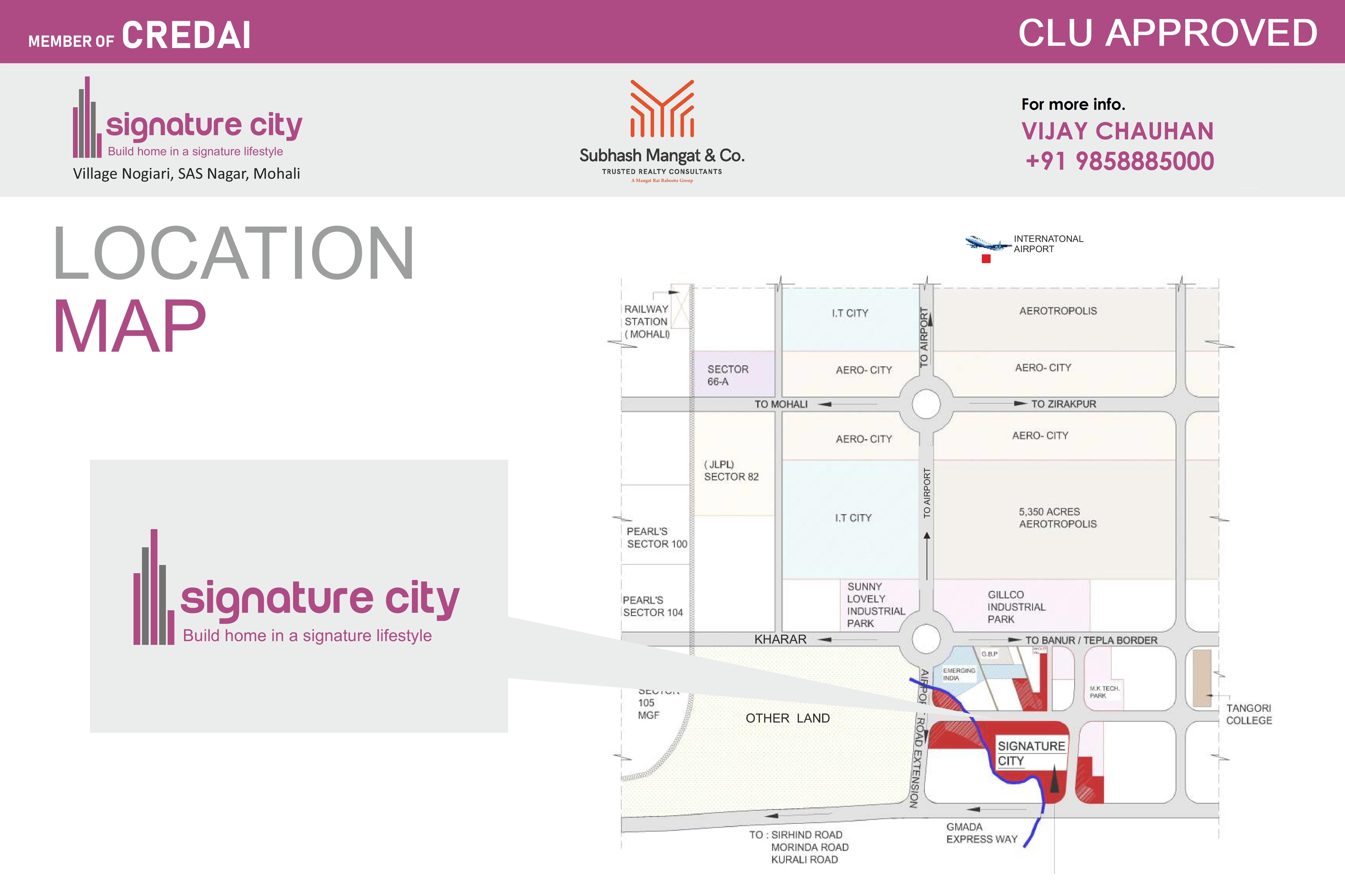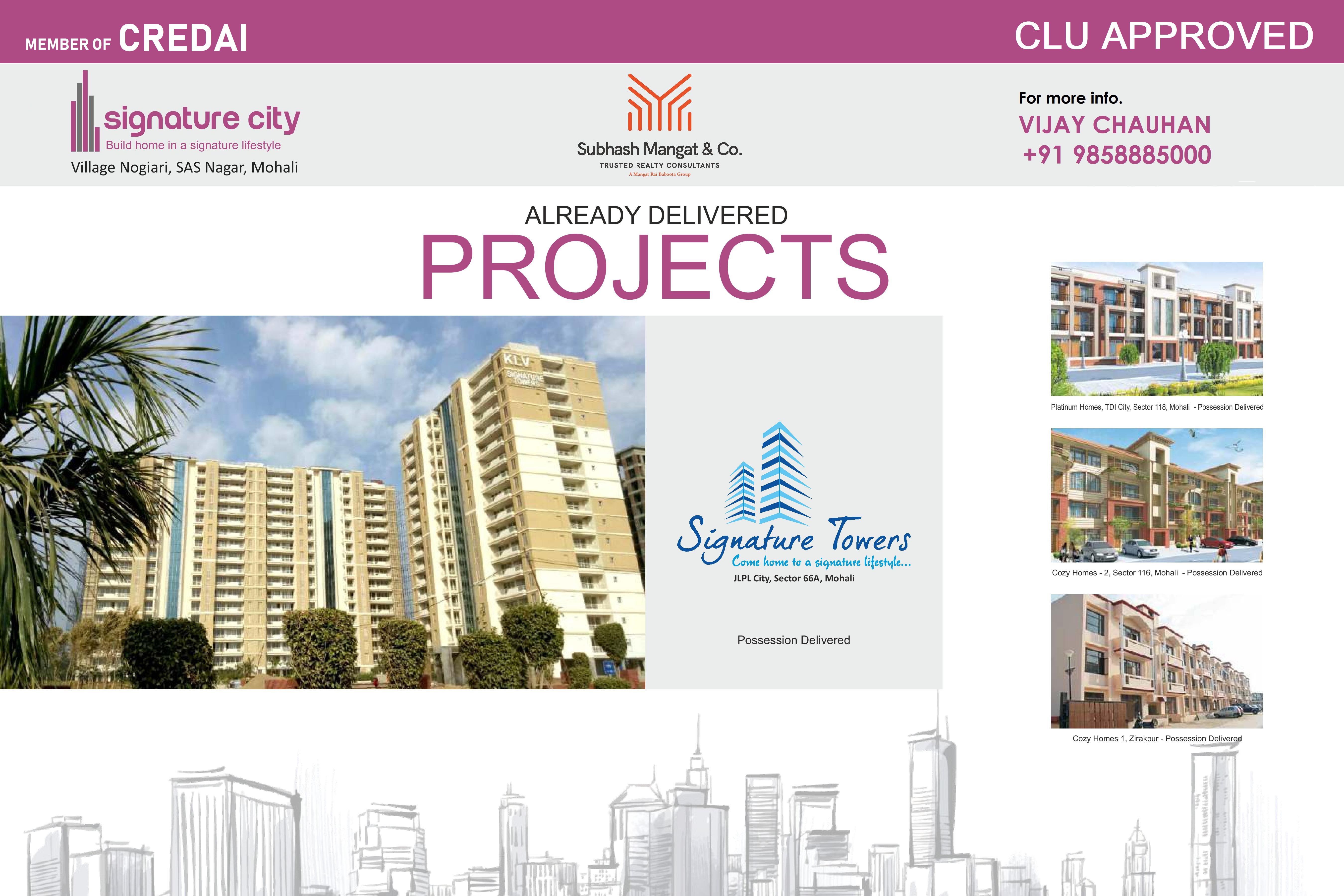 Download Brochure - Price ListProject with the high-class amenity and modern style. This has nice name Signature City IT City Road Plots in Mohali at the pos. This is located at the main region of the city where everything is available at your fingertips. Today everyone wants to select a home to be in all features of residency and comfy environment. For this, Signature City IT City Road Plots is coming with all these types of qualities. with multiple space utility, attractive balcony and best decoration with marbles and tiles. This residential home property is spread till the 126 acres of landsSignature City Group is a leading real estate group, launched a well decorated residential .